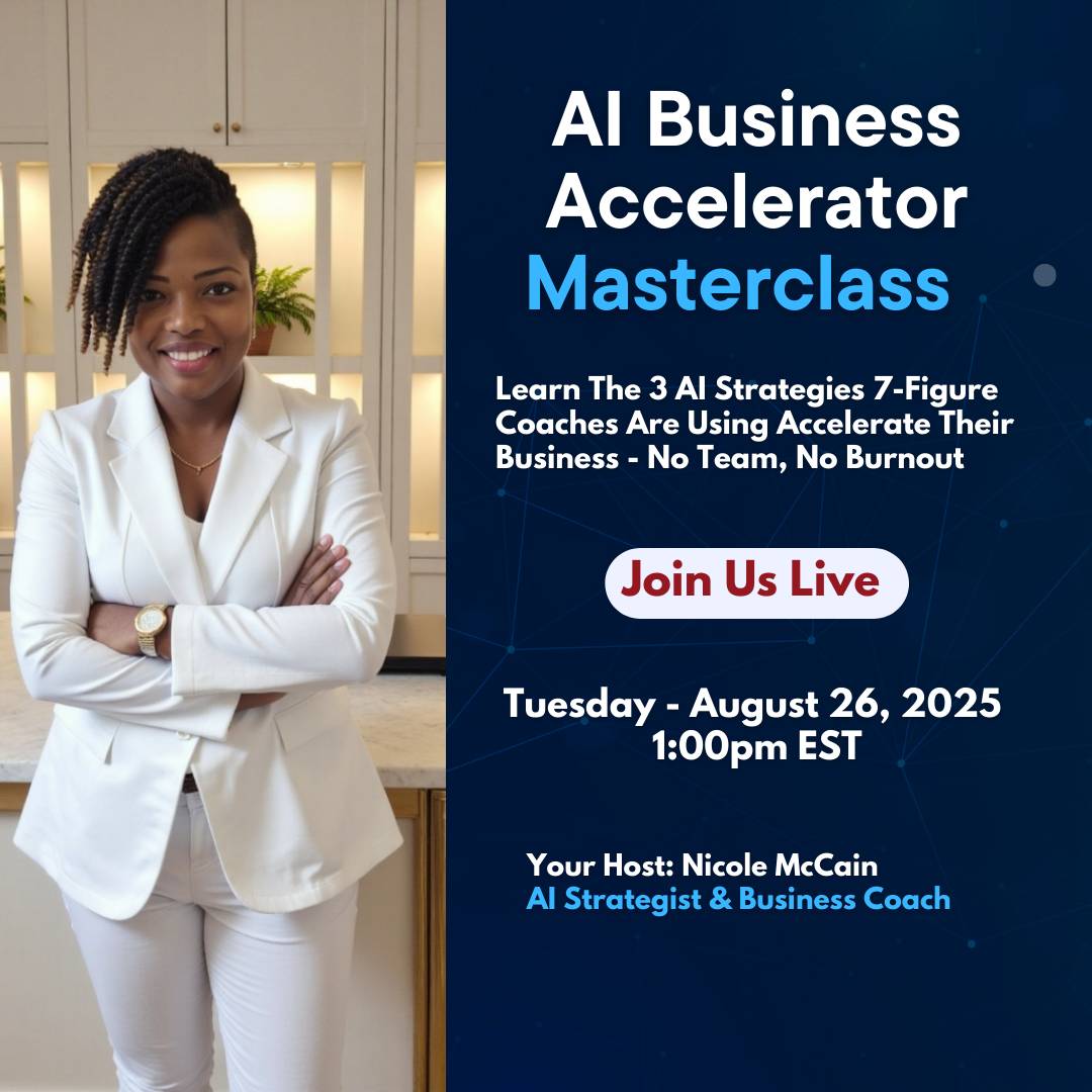 Nicole McCain is an AI Marketing Strategist who turns online coaches into AI Powered machines. After 20 years of scaling Fortune 500 companies and mentoring hundreds of women, she bottled her tech corporate expertise and sales frameworks into an AI-driven engine that runs while she’s at the school pickup line or cheering at dance recitals.
